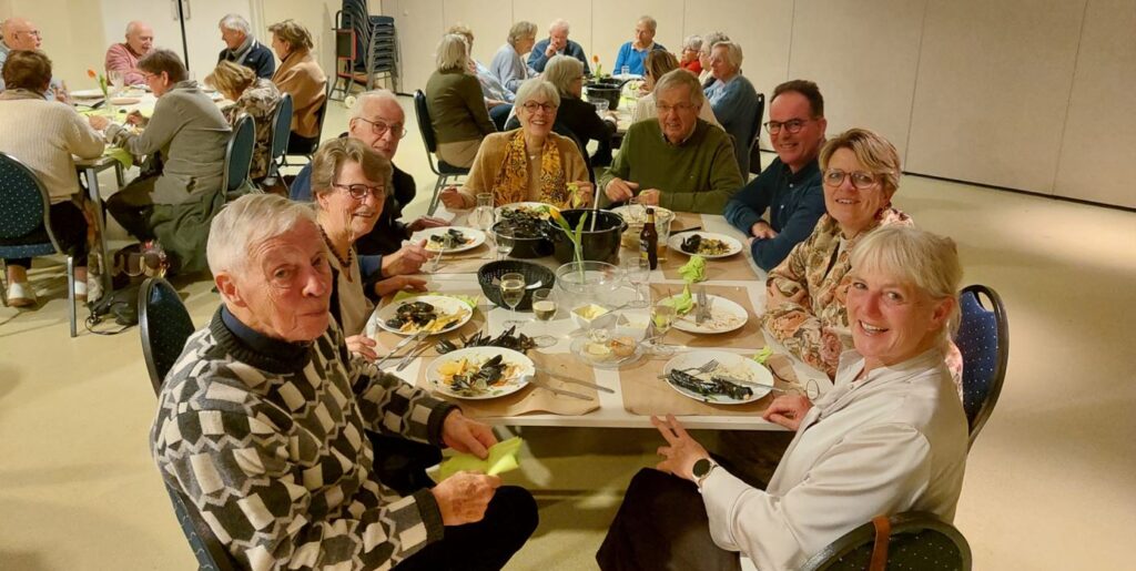 Afgelopen zaterdag was daar weer een voorbeeld van, want toen vond de zogeheten Mosseldrive plaats in Buurthuis Irene. Eerst kaarten voor wie maar wil, om vervolgens de benen onder een van de fraai gedekte eettafels te plaatsen.